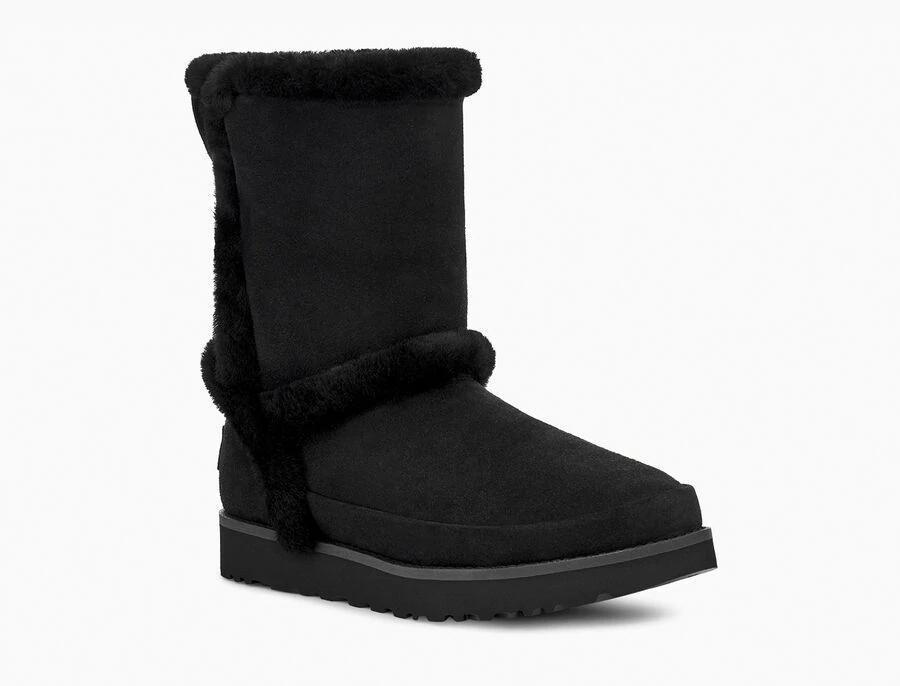 Model:1112500Fluffy sheepskin accents the cuff and seams of this Classic Short update, making it as cozy to the eye as it is to the foot. Keeping everything you love about the original luxuriously soft sheepskin and suede, iconic Classic construction, and a flexible, lightweight sole it pairs with leggings and a shawl-collared sweater, or jeans and a puffer jacket.