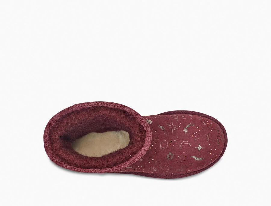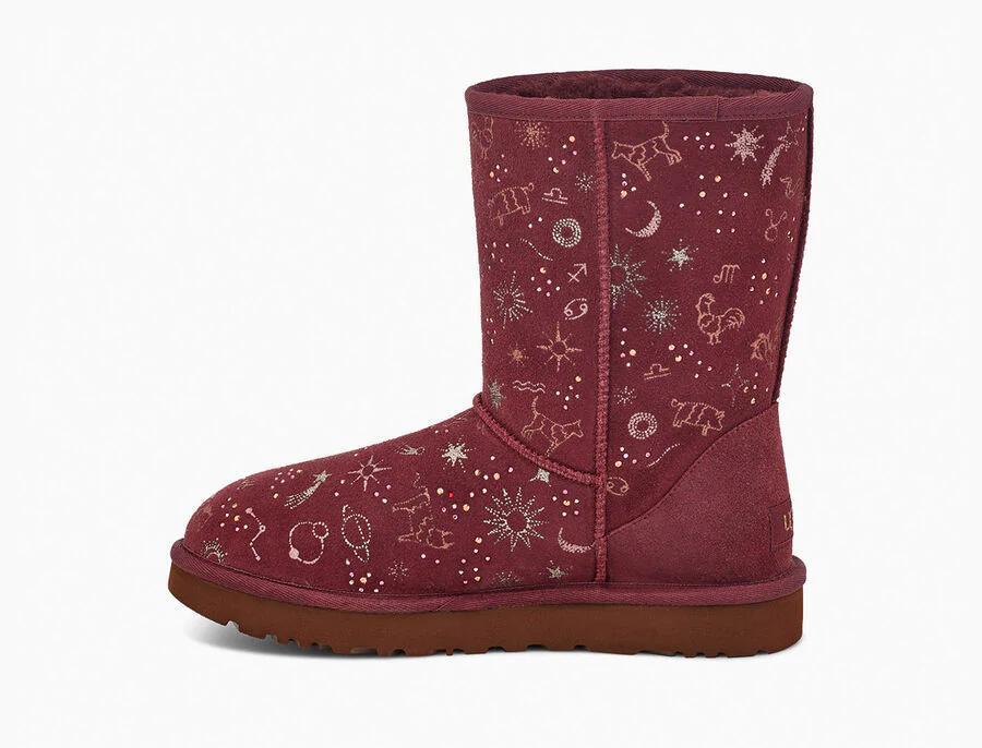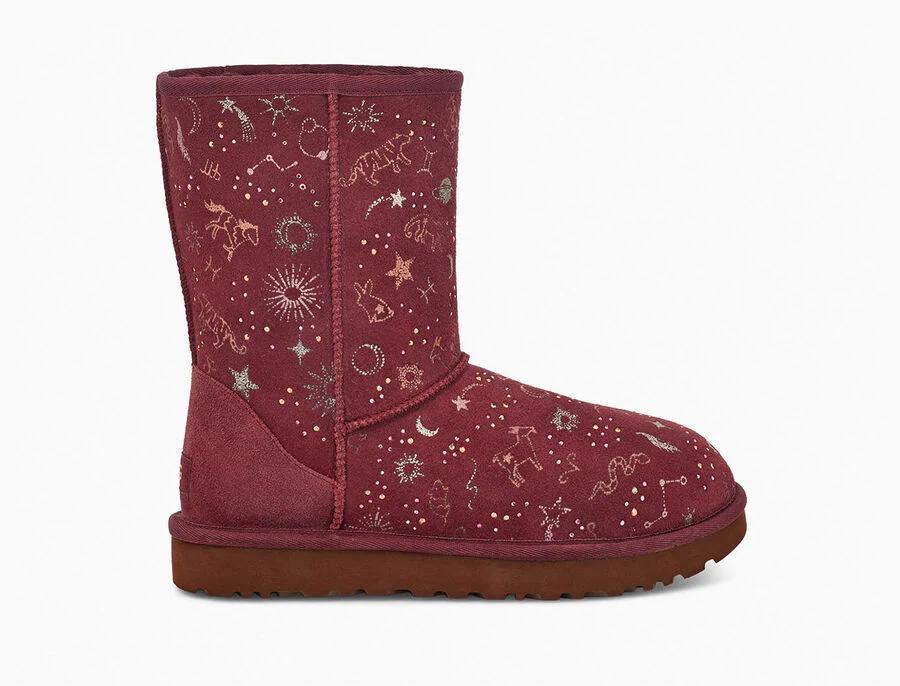 Model:1112517This horoscope-inspired take on our iconic Classic features shimmering zodiac signs in a metallic print with dazzling crystal accents. The festive suede upper is grounded on a lightweight, cushioned sole for all-day support, and finished with our ultra-soft plush wool blend for cloud-like coziness. Pair with dark denim and velvet, or leggings and cashmere.