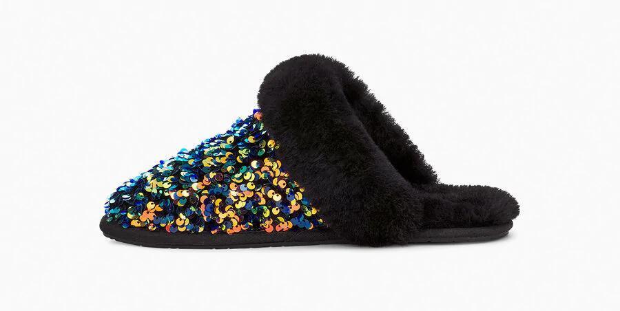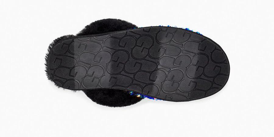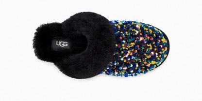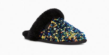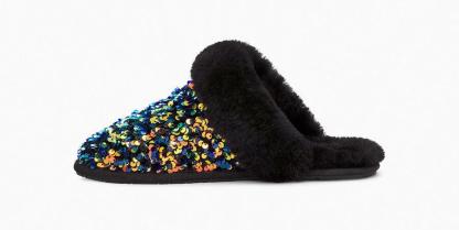Model:1112304Newly finished with a festive sequin upper, the Scuffette merges two of our most popular slippers, the Coquette and the Scuff. Lined with our world-renowned sheepskin, this cozy style features a molded rubber sole for easy indoor-outdoor wear. Pair with our soft robes or add some sparkle to casual weekend ensembles.